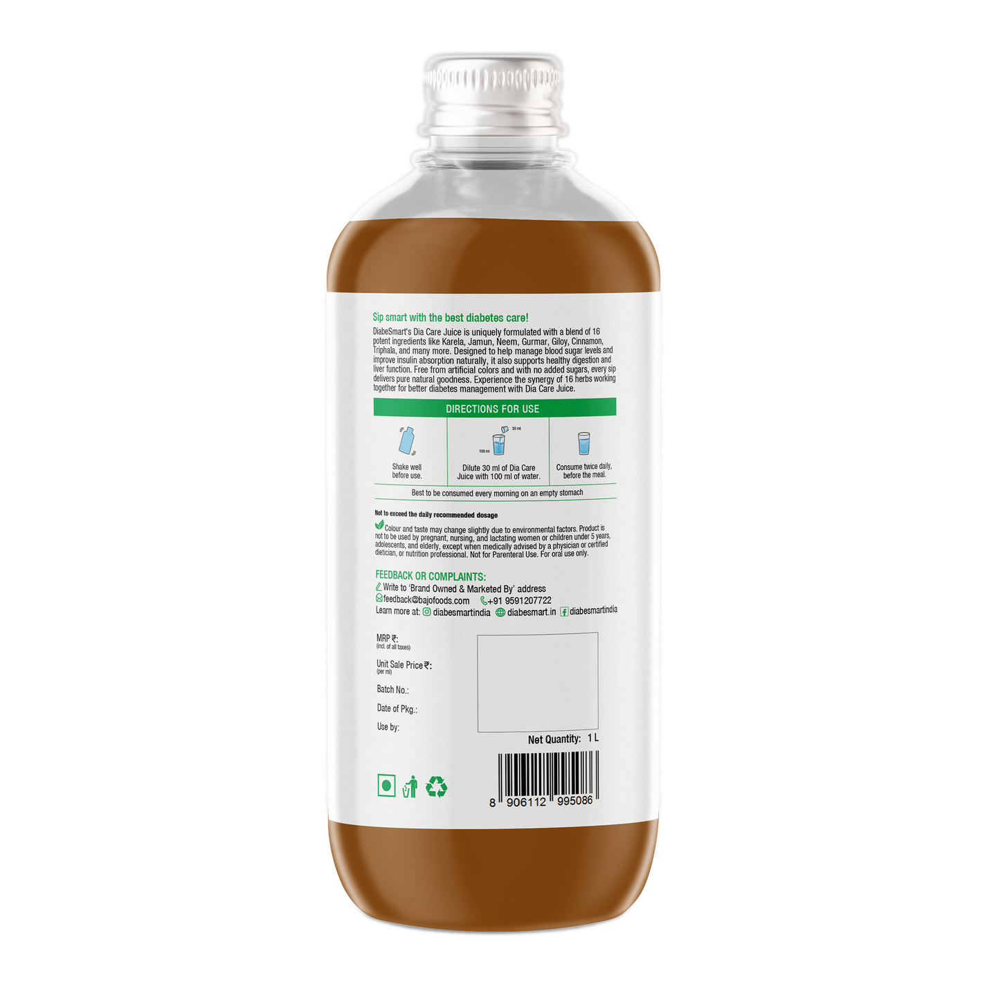 DiabeSmart Diabetic Care Juice is not intended to replace any prescribed medication. It is designed as a supplement to support overall health and well-being.