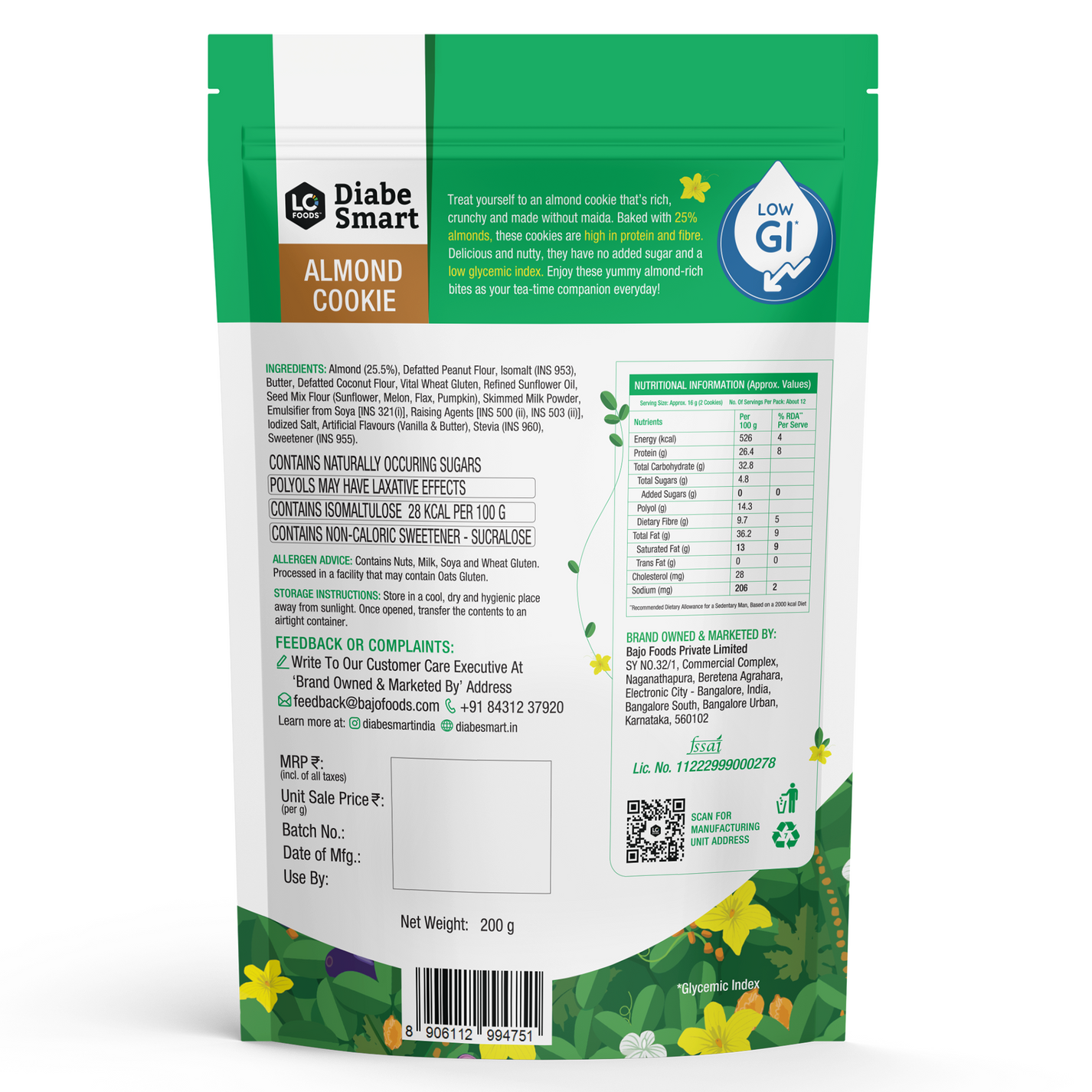 1. Blood Sugar Management: With a low glycemic index and no added sugars, our Sugar-Free Almond Biscuits are a diabetic-friendly choice that won't cause unwanted spikes in blood sugar levels. Enjoy the sweetness of life without compromising your health. 2. Nutrient-Rich: Almonds are a nutritional powerhouse, packed with vitamins, minerals, and antioxidants. From supporting heart health to promoting brain function, almonds offer a multitude of benefits that nourish your body and soul. 3. Satisfying and Delicious: Each bite of our biscuits is a symphony of flavors and textures, from the crunch of almonds to the wholesome goodness of whole wheat flour. They're not just snacks; they're moments of pure delight that satisfy your cravings and lift your spirits. Cost-Efficient and Worth Every Penny: We understand the importance of value for money, especially when it comes to managing your health. That's why we've made sure that our Sugar-Free Almond Biscuits offer both quality and affordability. With each pack, you're not just investing in a snack—you're investing in your well-being, knowing that every bite brings you closer to a healthier, happier you. Almost all our products are made with careful consideration in mind. Experience the joy of guilt-free indulgence with DiabeSmart's Sugar-Free Almond Biscuits. Treat yourself to the warmth of almonds, the goodness of whole wheat, and the sweetness of natural ingredients. It's more than just a biscuit—it's a promise of wellness and joy with every bite.