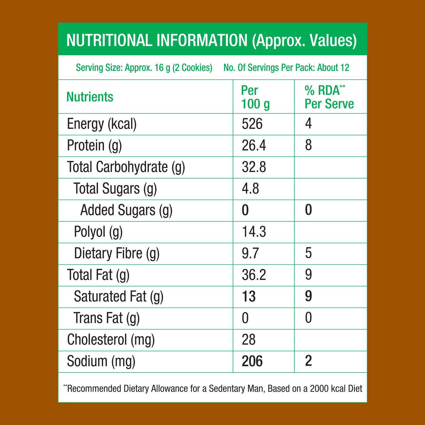 Almonds: We've handpicked premium almonds for their rich flavor and nutritional benefits. Almonds are packed with heart-healthy fats, protein, and fiber, making them a perfect choice for those looking to snack smarter. Whole Wheat Flour: Our biscuits are made with whole wheat flour, ensuring that you receive the full spectrum of nutrients from the grain. With its high fiber content, whole wheat flour aids in digestion and helps maintain steady blood sugar levels. Natural Sugar Substitutes: Sweetened with natural sugar substitutes like stevia and erythritol, our biscuits offer the perfect balance of sweetness without the guilt. Say goodbye to artificial sweeteners and hello to pure, natural indulgence.